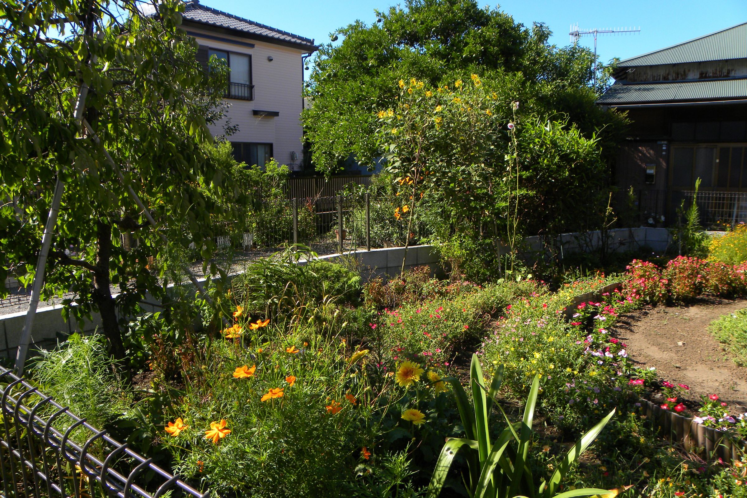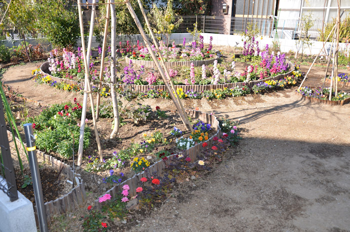 先日、霜が降りたため花の数は少ないです。3時すぎるとオープンガーデン全体にかげります。