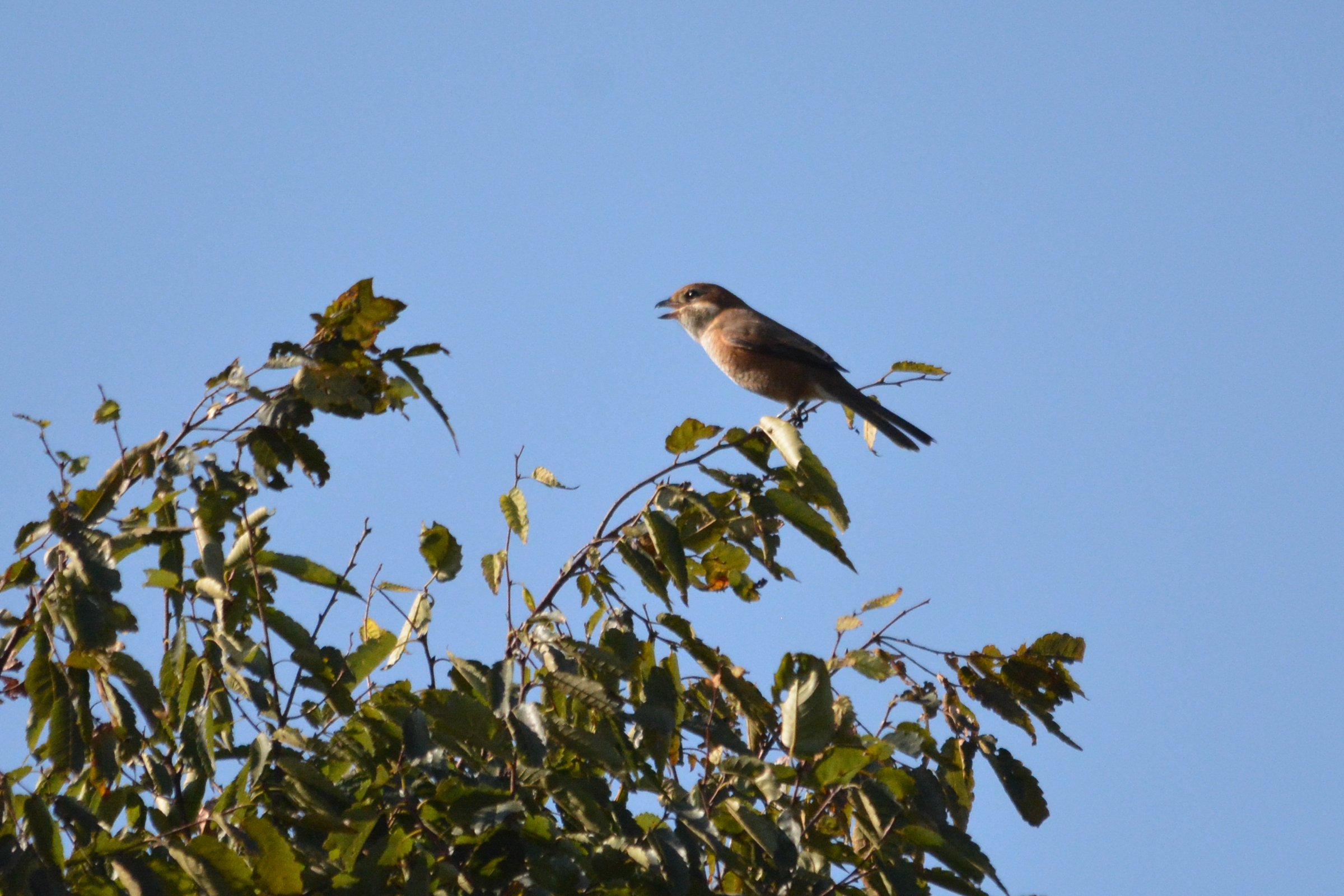 9時に武山山頂に着きました。快晴だが空はもやっていました。すっきりしません。 野鳥の友の会の方が鷹の渡りに記録をつけてました。その人達のお陰で遙か点の状態で いる場所を皆さんに教えてくれましたので撮ることができましたがいまひとつはっきりしません。 午後からはキビタキの現れる場所に行きましたが 1羽も姿を見せません。も〜どこかに行ってしまったのかな?