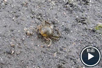 河口のアシ原で見られる。ごつごつした感じのカニ。