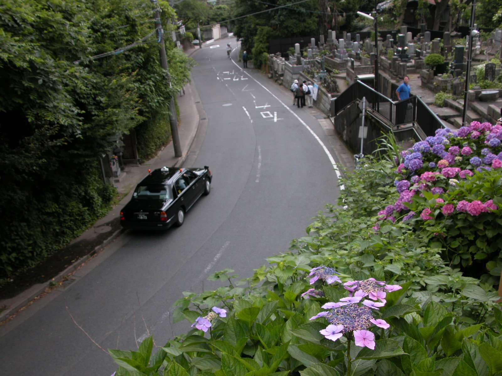成就寺は鎌倉の海を見下ろす高台にある寺である。参道の階段の両脇に、びっしりと紫陽花の花が約30mぐらい続いて咲いてます。 |