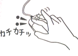 ダブルクリック クリックを2回素早く繰り返すこと。 カチィカチィという感じ。 クリックとクリックの間隔をなるべく あけないこと