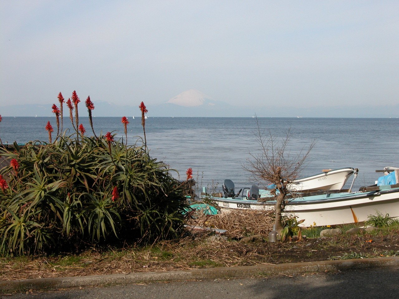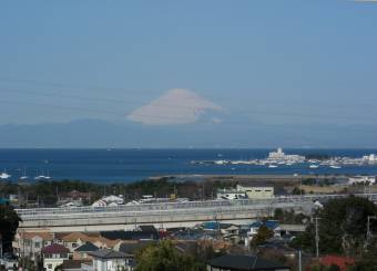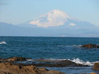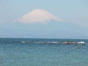 富士山の雪の姿を相模湾を挟んで見るのは心がやすらぐ。海・空の青さと雪の白さが