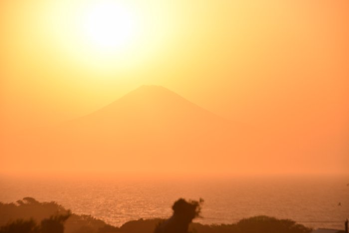 富士山が見えてるのに太陽が雲の中に吸い込まれていきました |