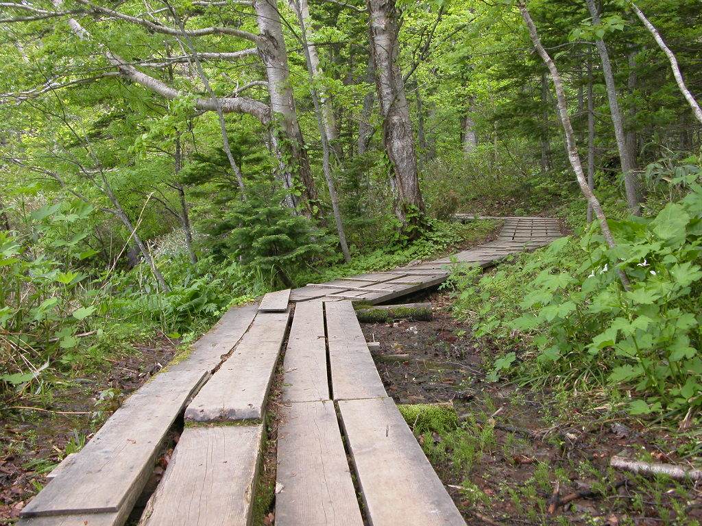 原生林に囲まれ静かに水をたたえる姫沼。周囲1kmの湖で散策道が整備されている。 高山植物や野鳥の声を楽しめます。観光バスでの案内は写真を撮る時間がないほど さぁ〜と通り過ごしてしまいます。できたら・・路線バスがいい。 |