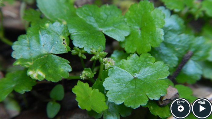 | 語源 | 茎は細くまばらに分布して地をはい、節からはひげ根をだす。 ふちにはするどい鋸歯がある。 |