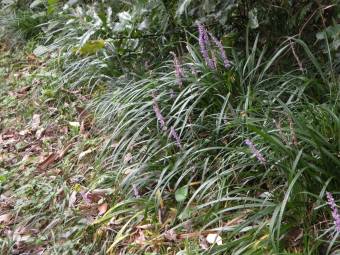 林や森の中のヤブのような生い茂ったところに生息してる。 葉が細長い線形でランに似ているから。ユリ科 /常緑多年草 |