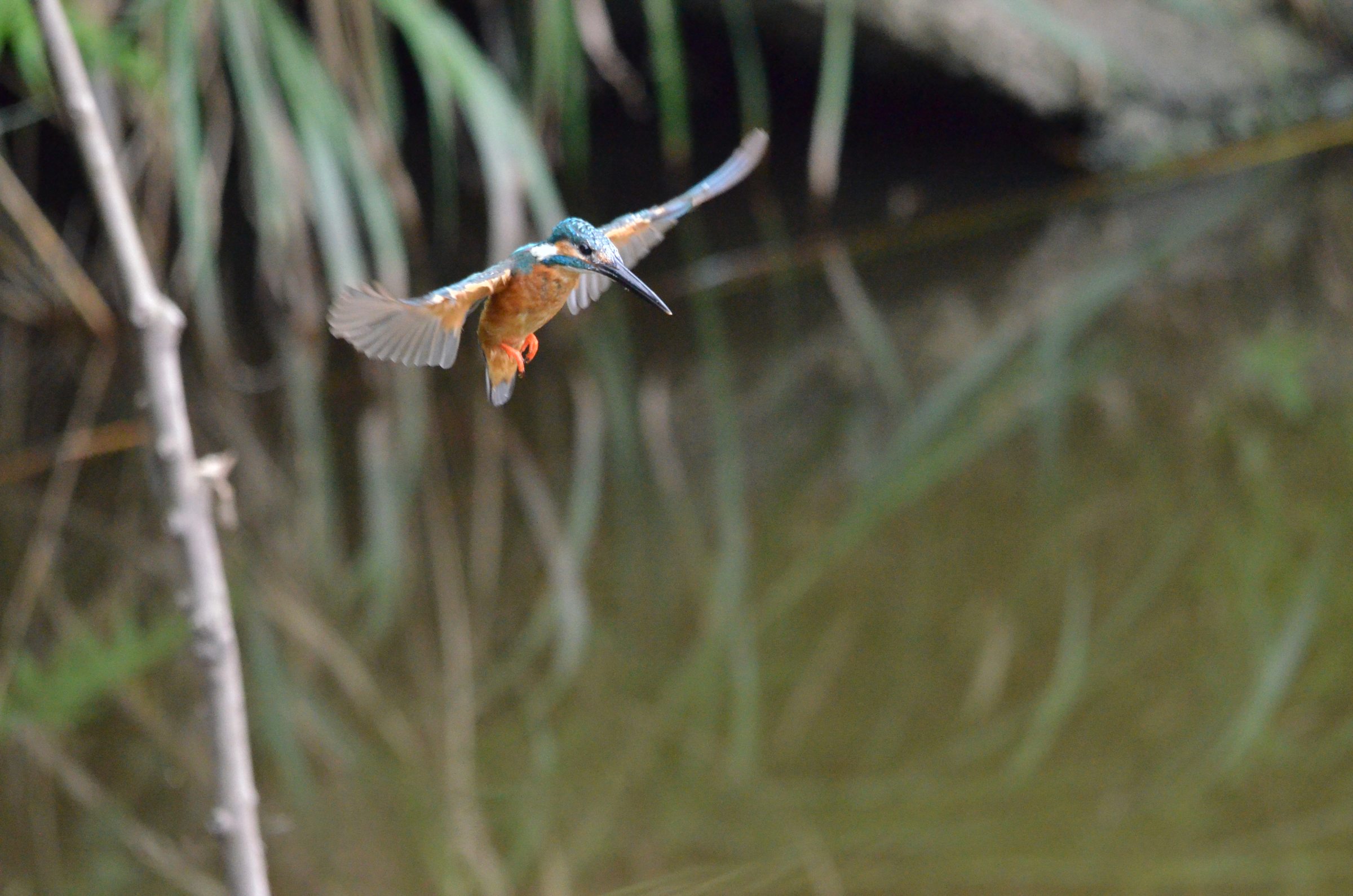 空中での優雅な姿だが、カワセミにとっては死活問題です。がんばれカワセミ君 |