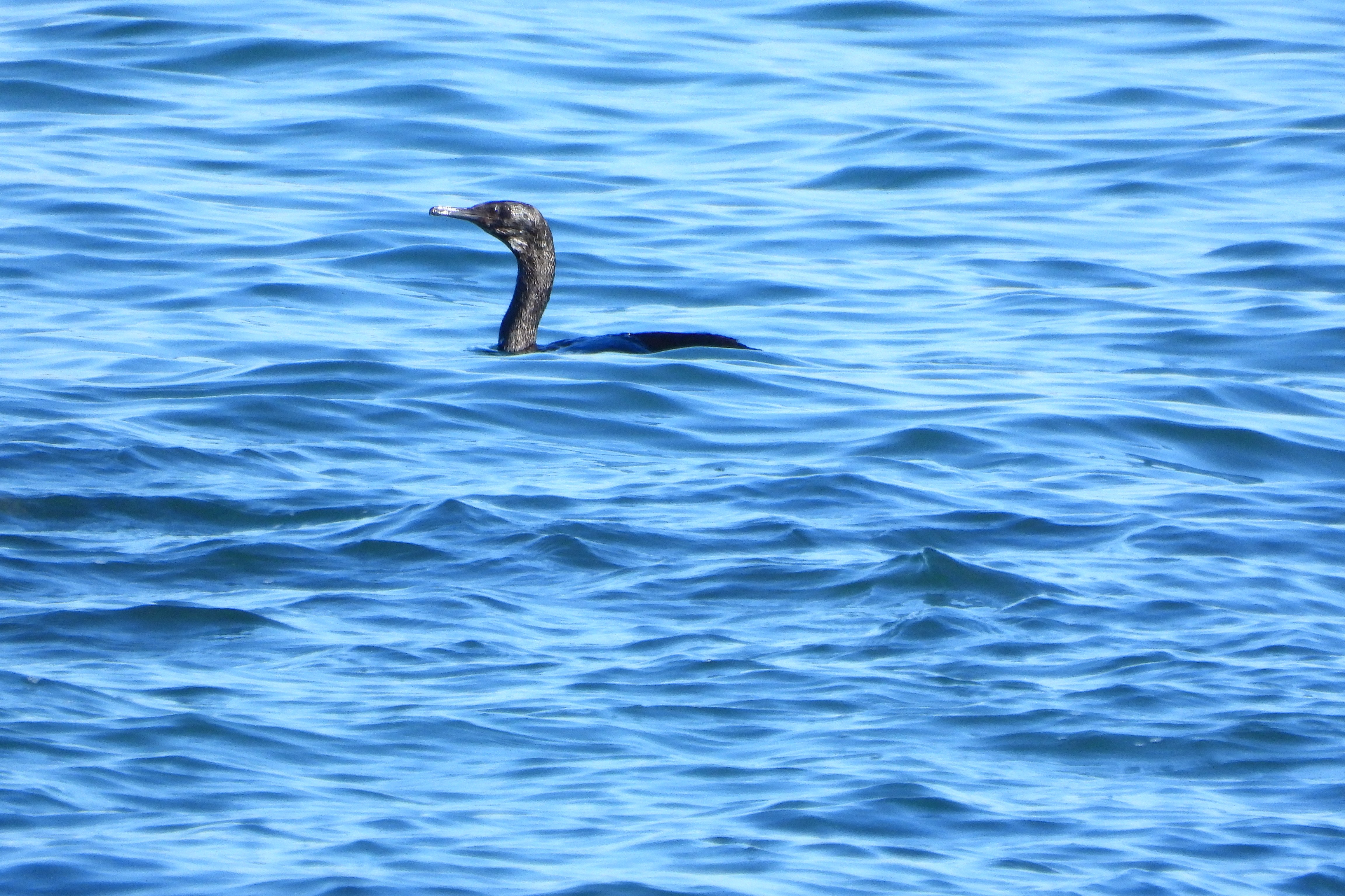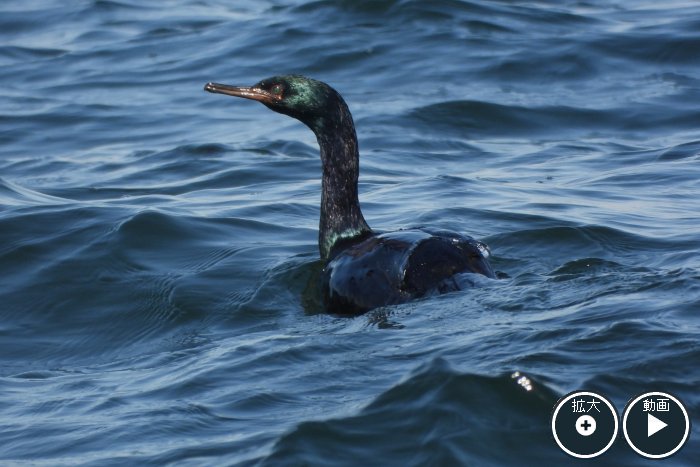 水面を沈みがちに泳ぐ。頭部から頸まで同じ太さに見える。 |