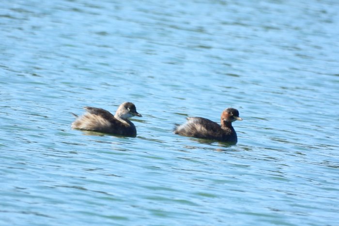カモより小さく潜水採餌。 盛んに潜水して小魚や水生昆虫などを捕らえて食べる。クチバシ基部の黄白色部。夏は頬から首の上部にかけて赤褐色。 |