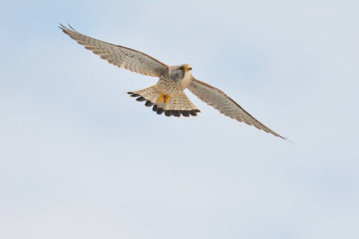 日本では本州の中部以北の崖地で繁殖し,冬は河原や草原にすむ。全長は,雄約33cm,雌約38cm。雌は全身茶褐色で細かい斑があり,雄は頭と尾が青灰色である。空中で小鳥を狩るほか,地上でバッタ類など大型の昆虫をとり,またホバリング(停止飛行)しながらネズミを狙う。 |