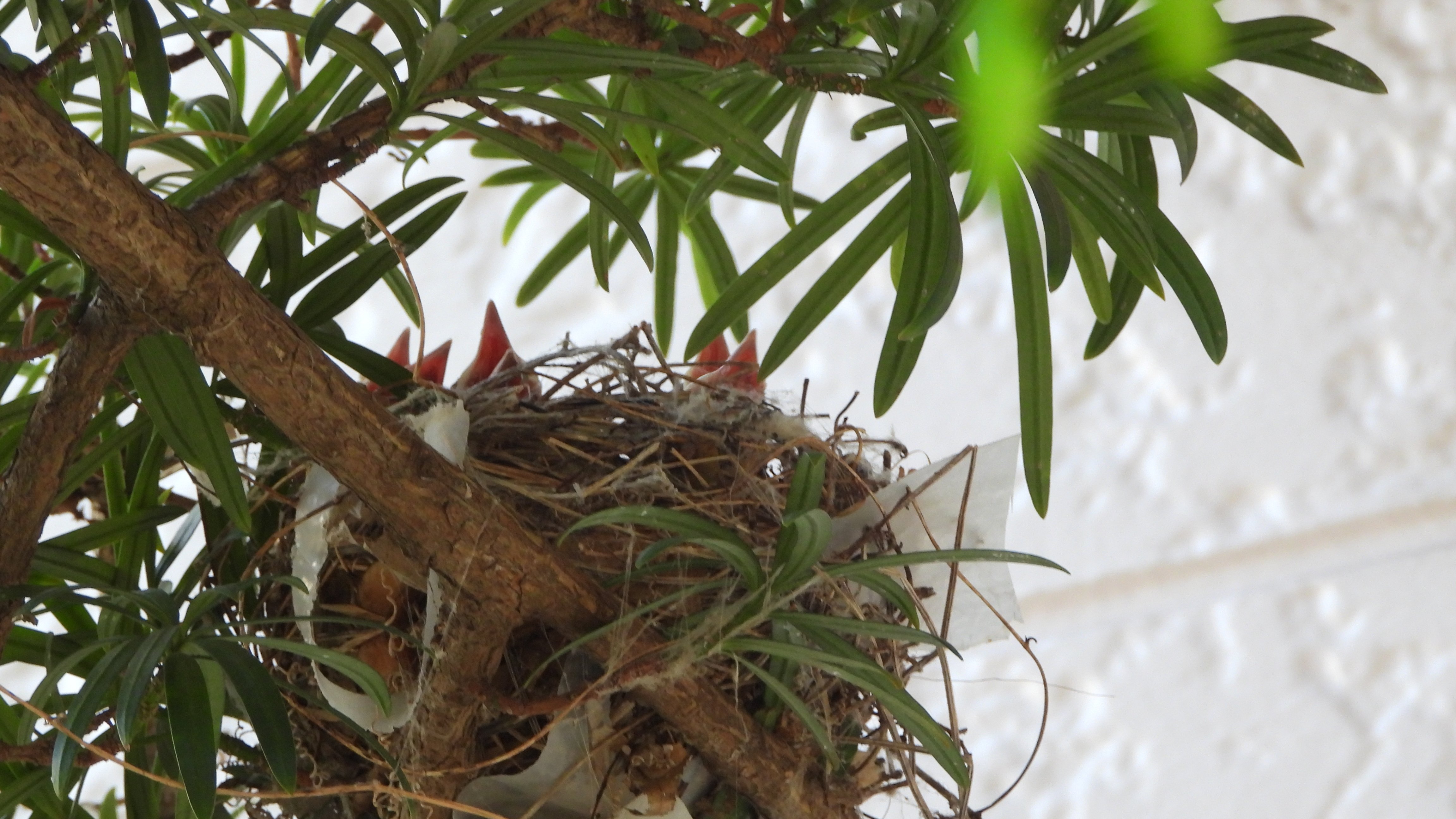 我が家の玄関前の薪の木でヒヨドリが巣を作り4羽の雛が育ちました。